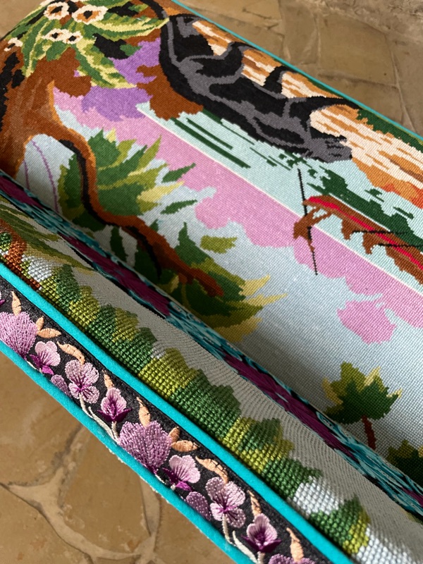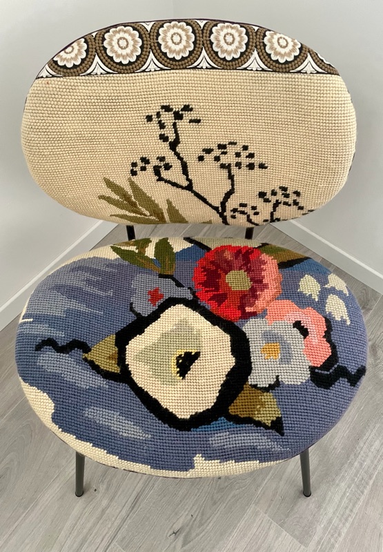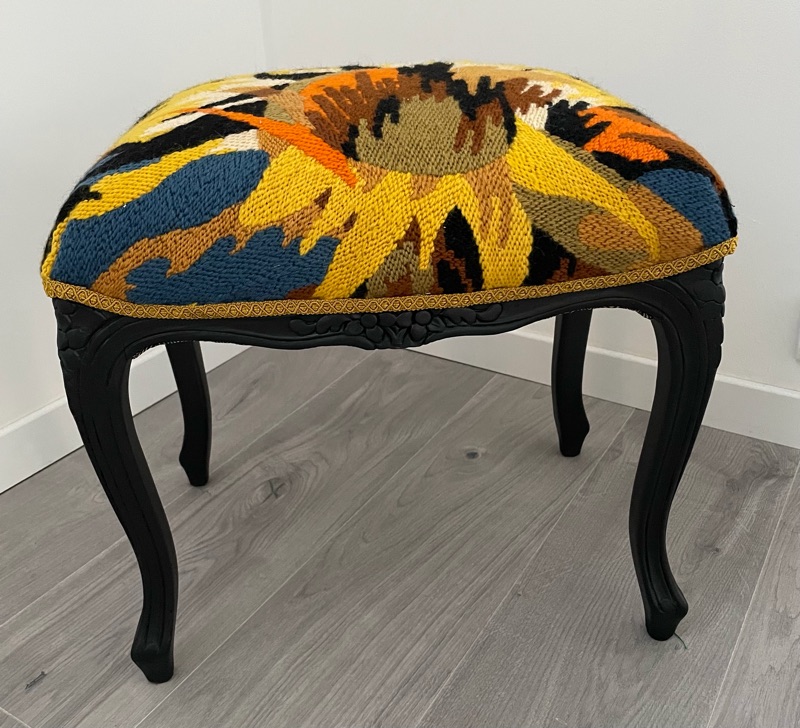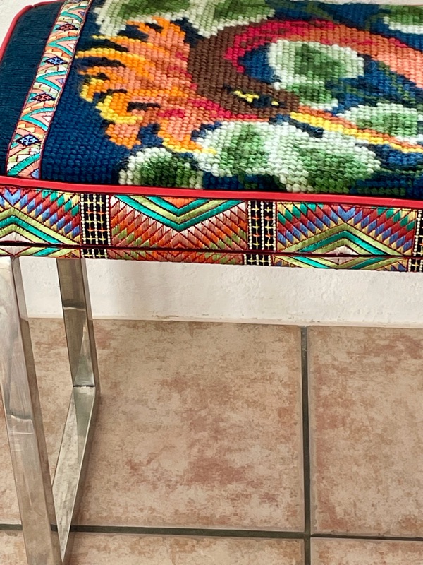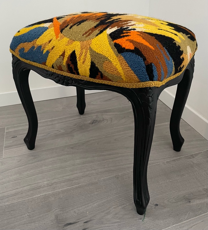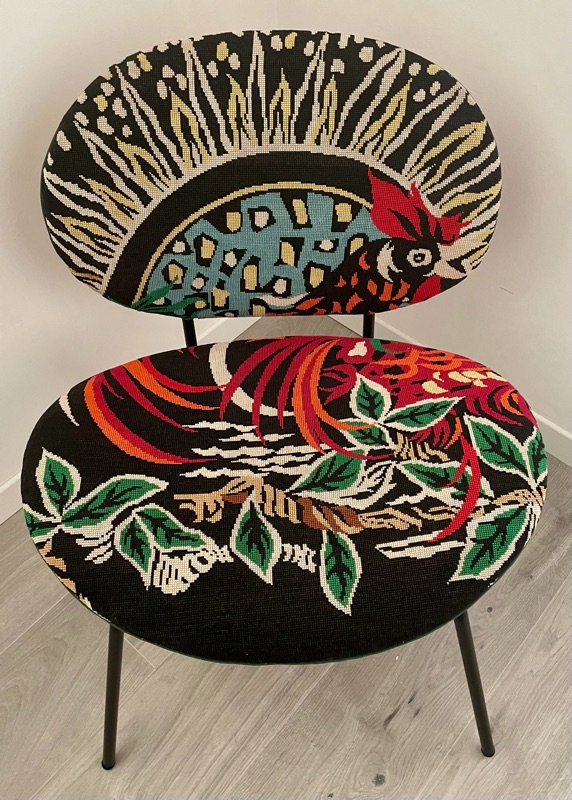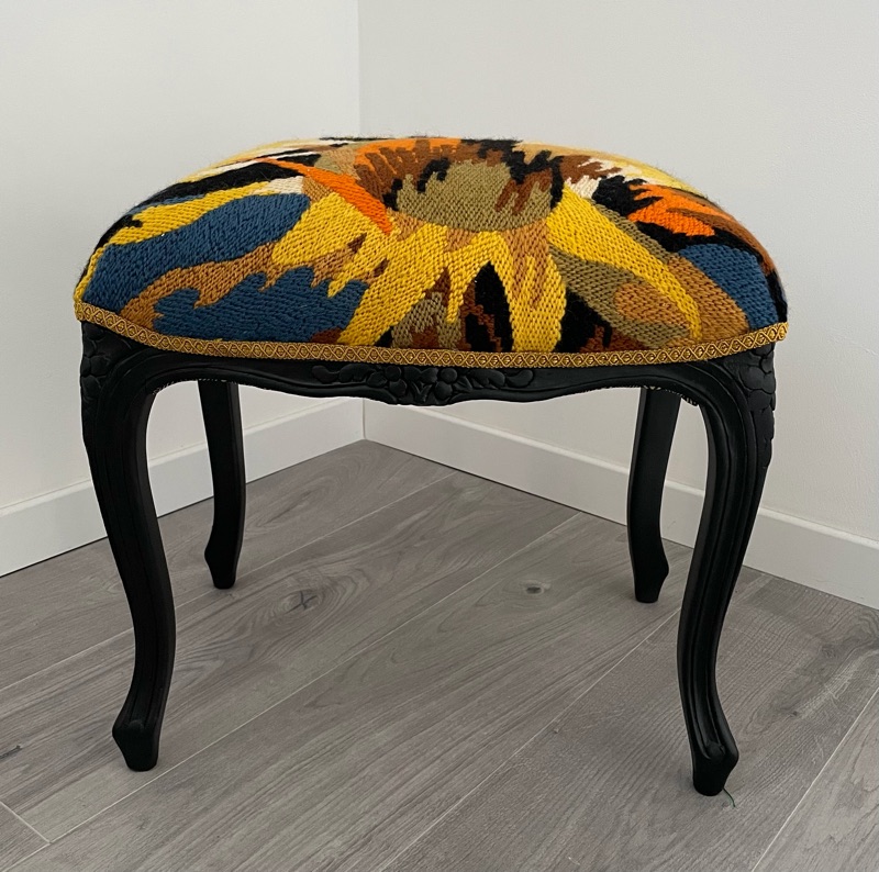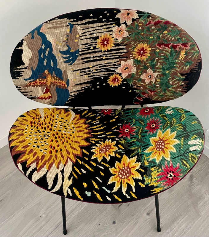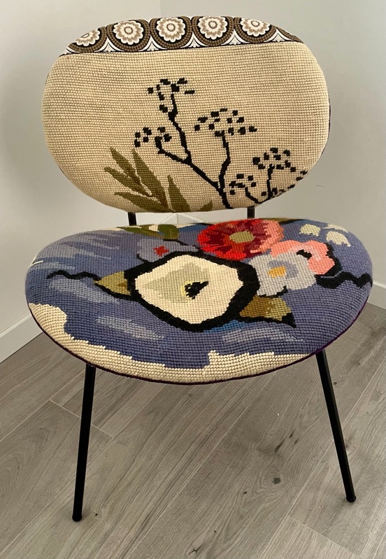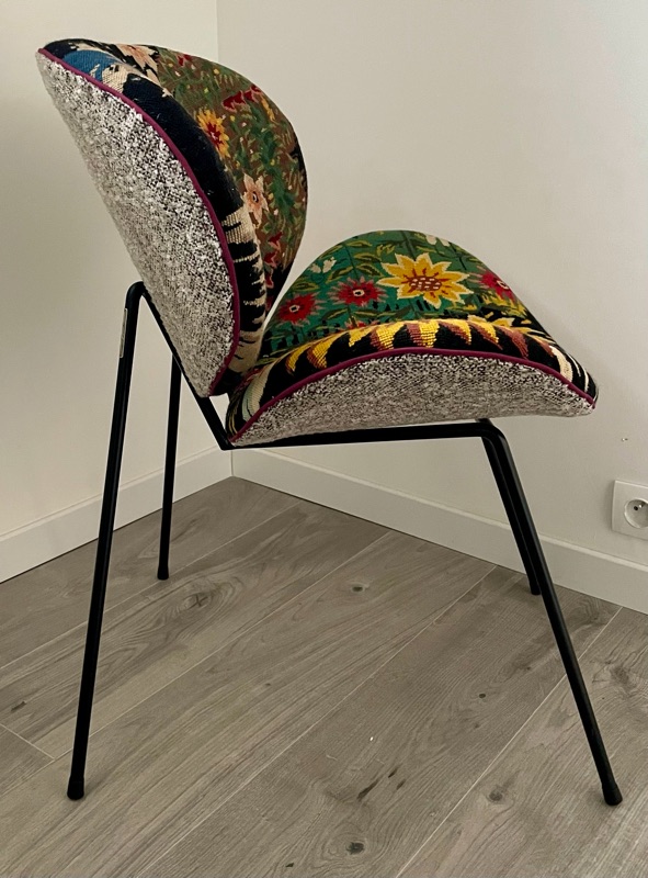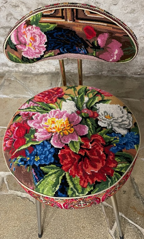 Je chine et je crée ! Tissus , canevas, galons anciens , fauteuils et meubles sont mes sources d'inspiration.
