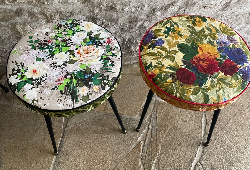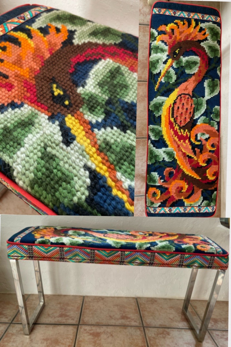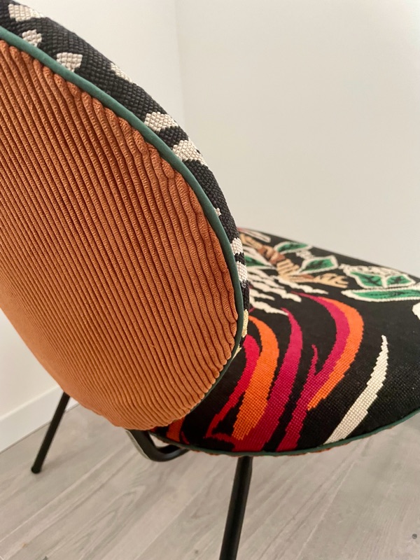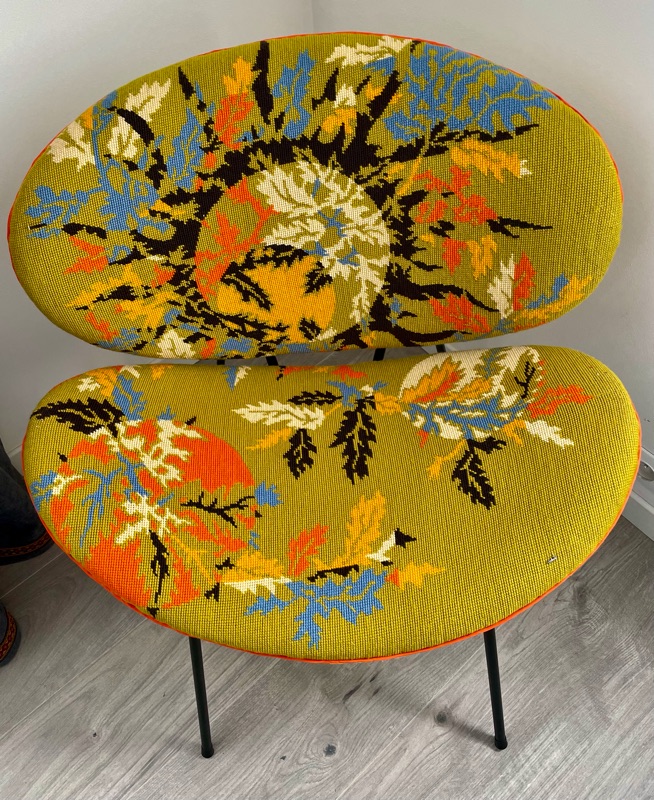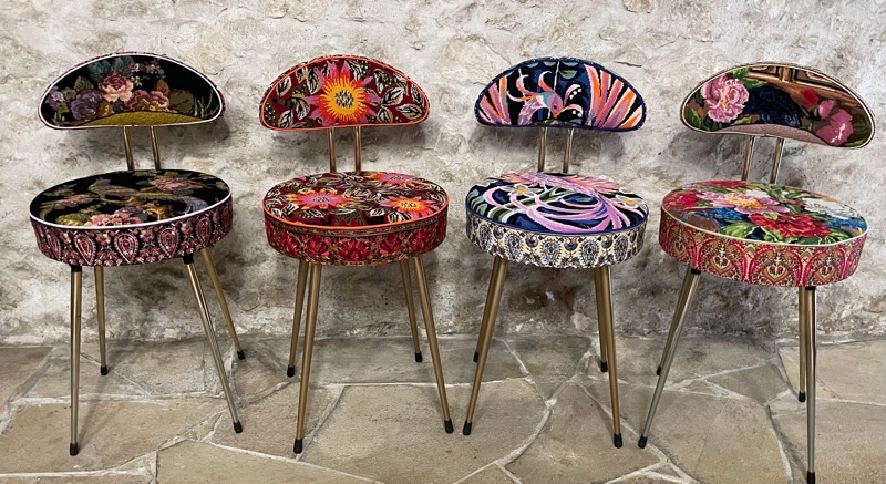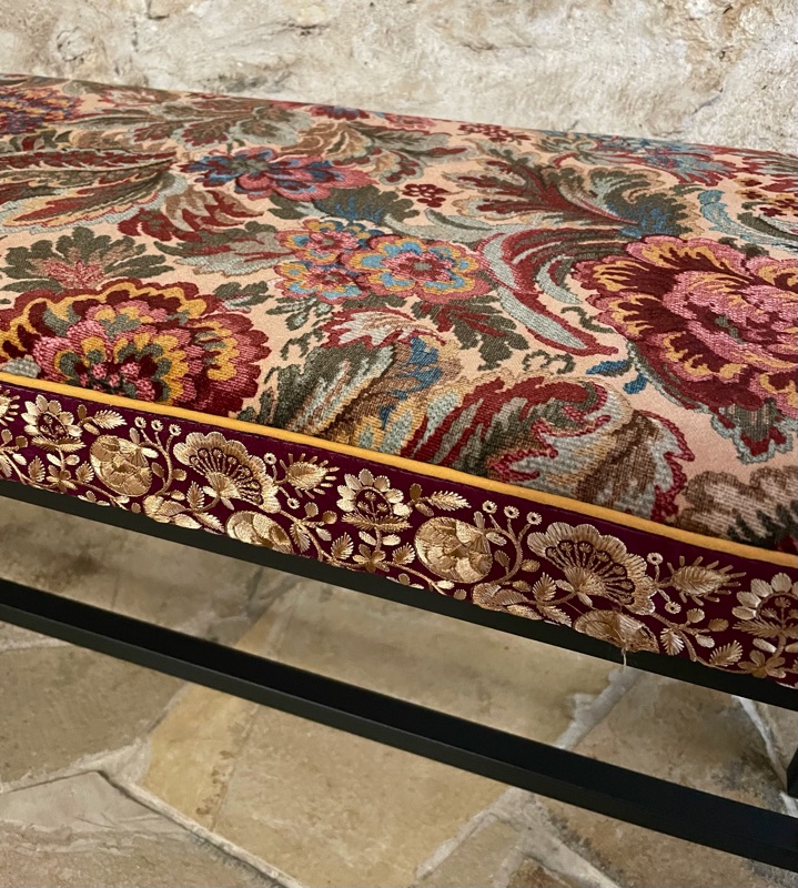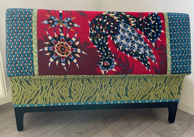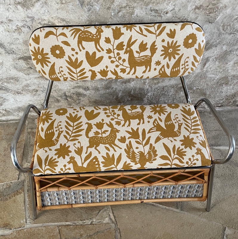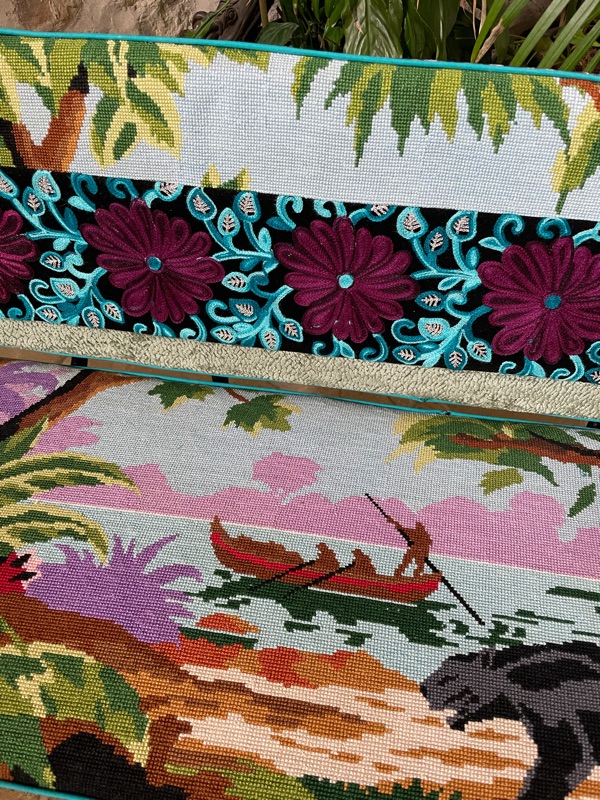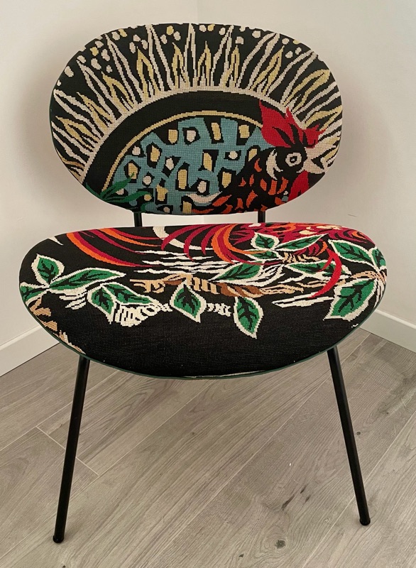 Je chine et je crée ! Tissus , canevas, galons anciens , fauteuils et meubles sont mes sources d'inspiration.