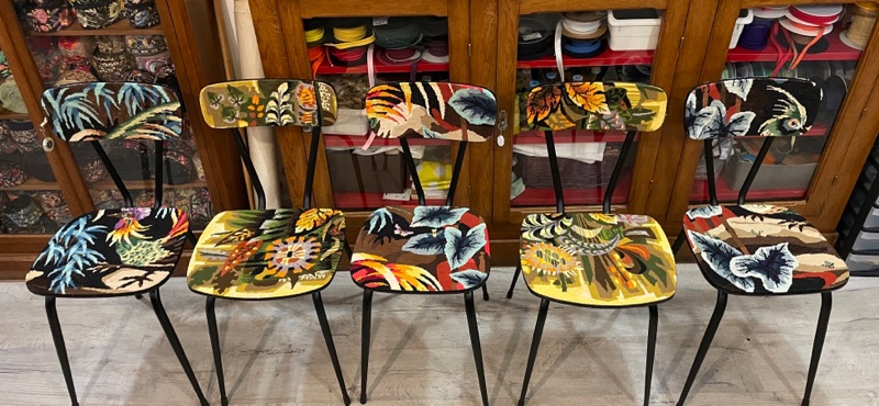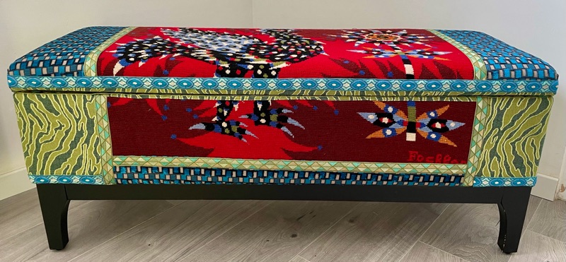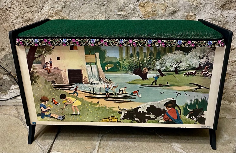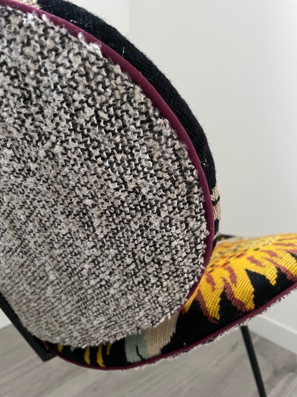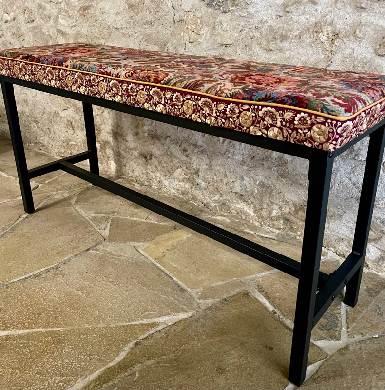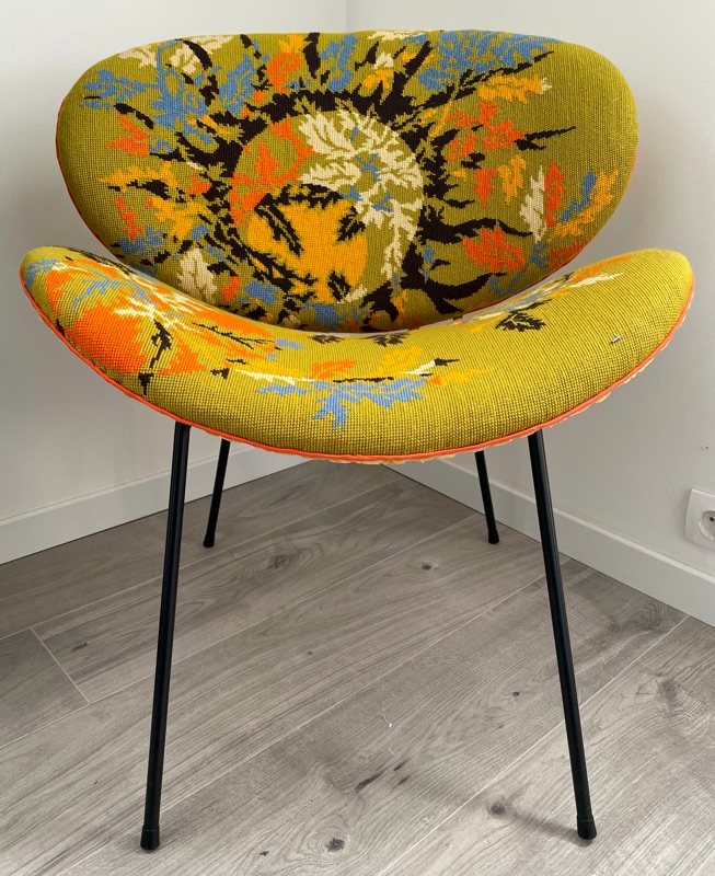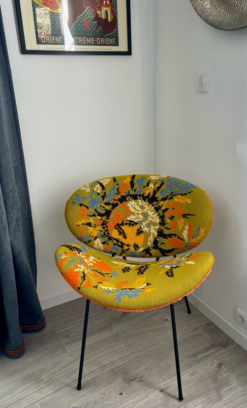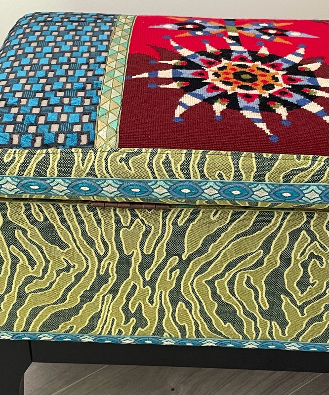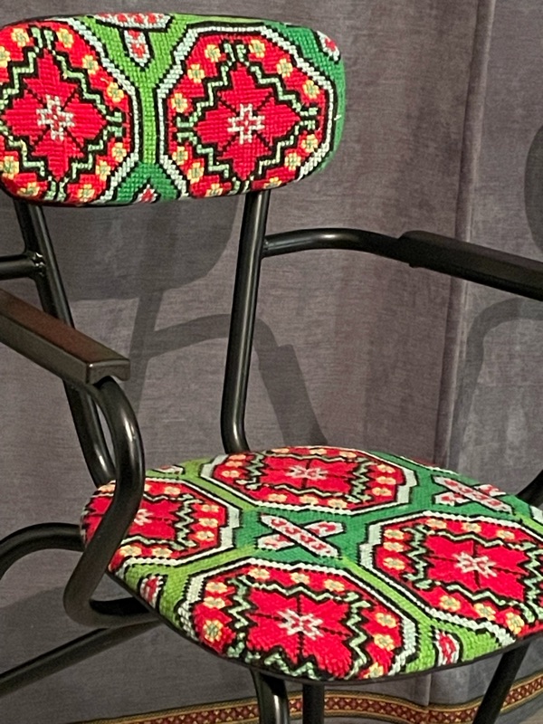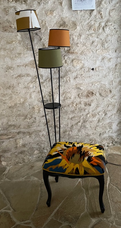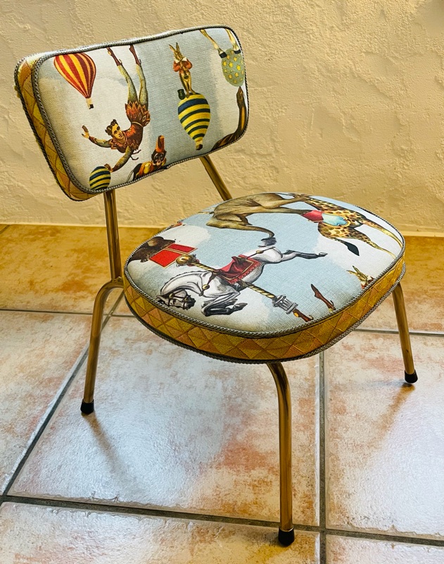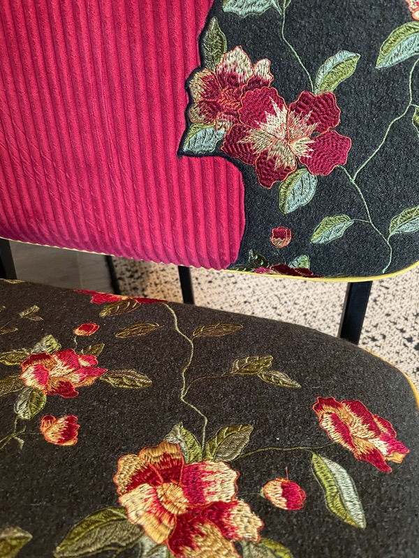 Je chine et je crée ! Tissus , canevas, galons anciens , fauteuils et meubles sont mes sources d'inspiration.