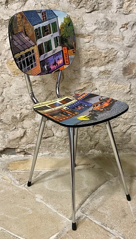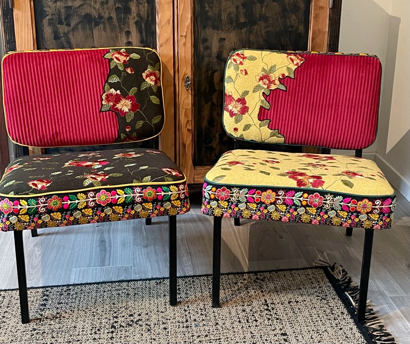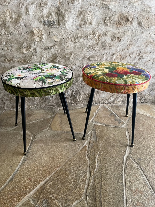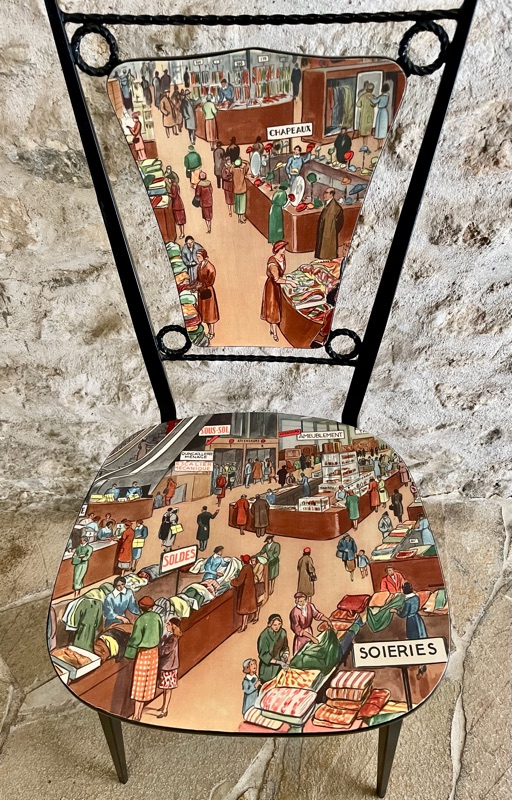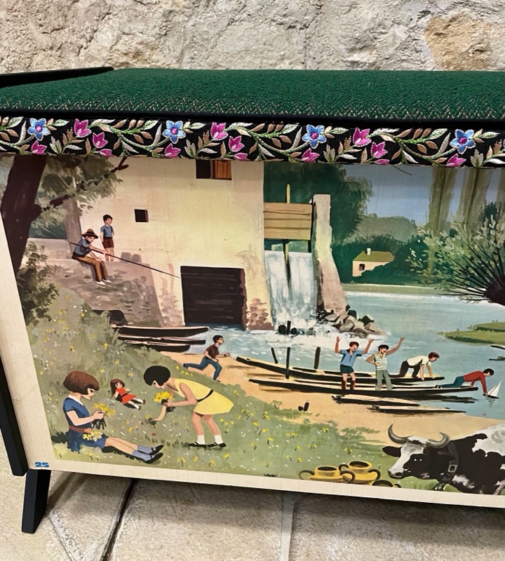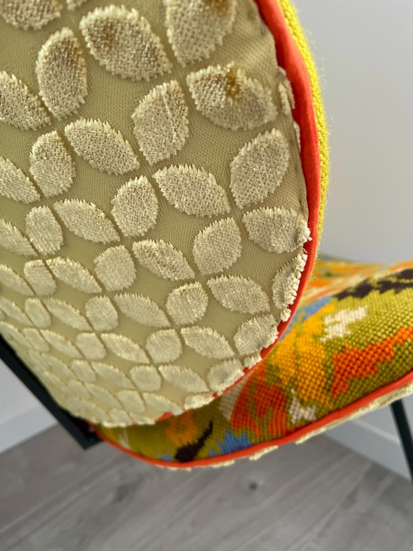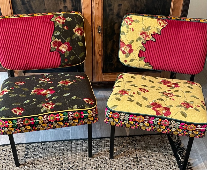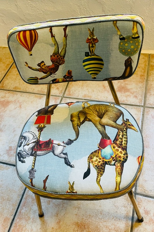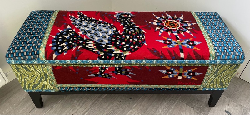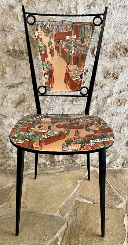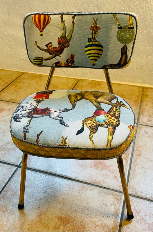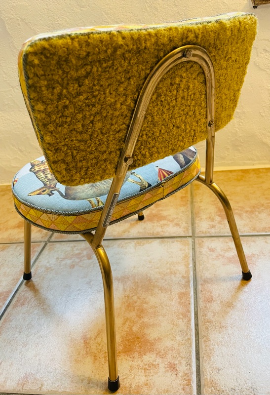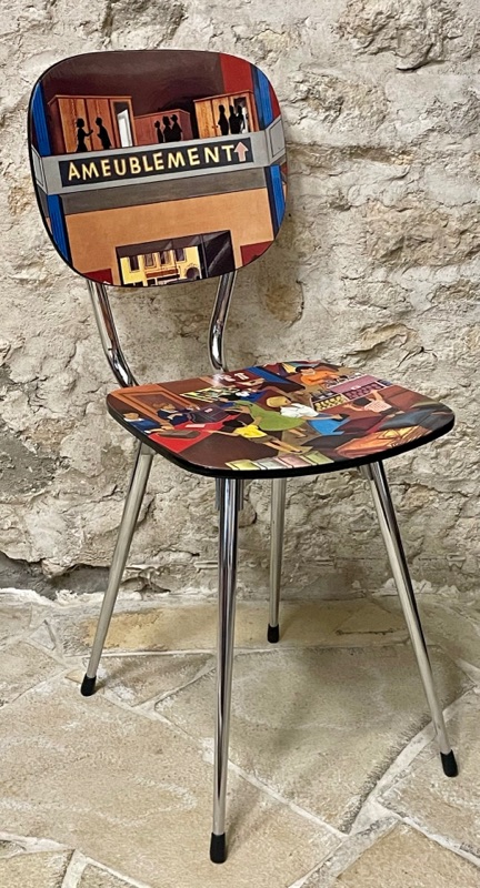 Je chine et je crée ! Tissus , canevas, galons anciens , fauteuils et meubles sont mes sources d'inspiration.