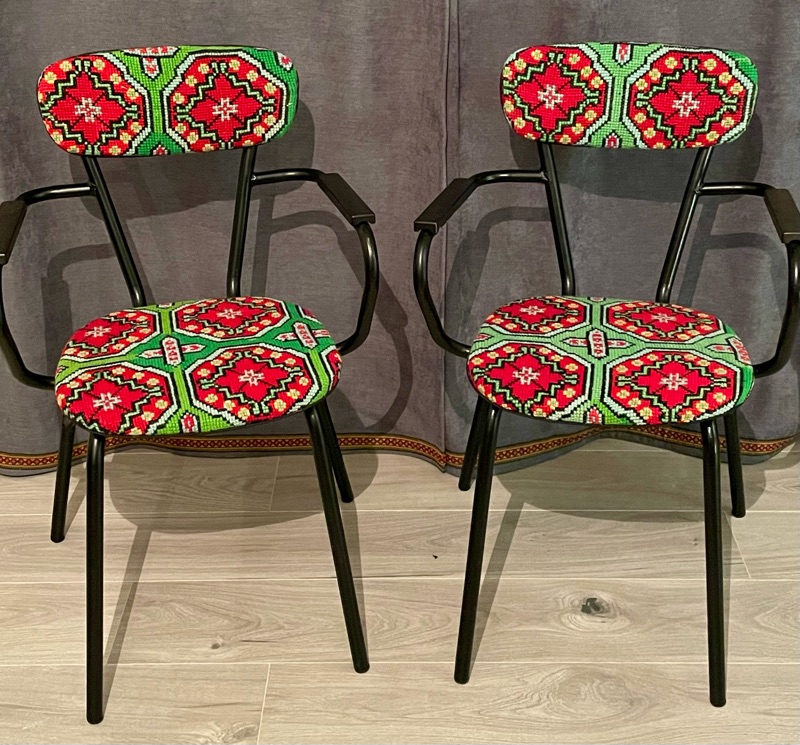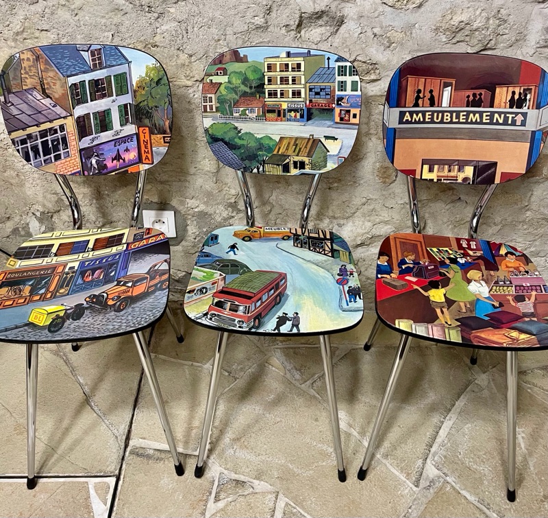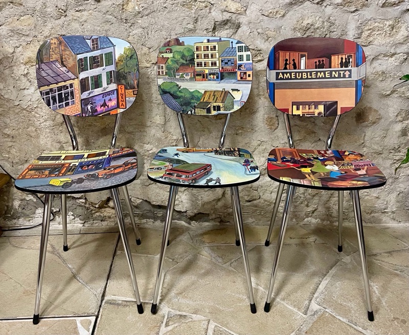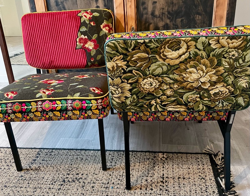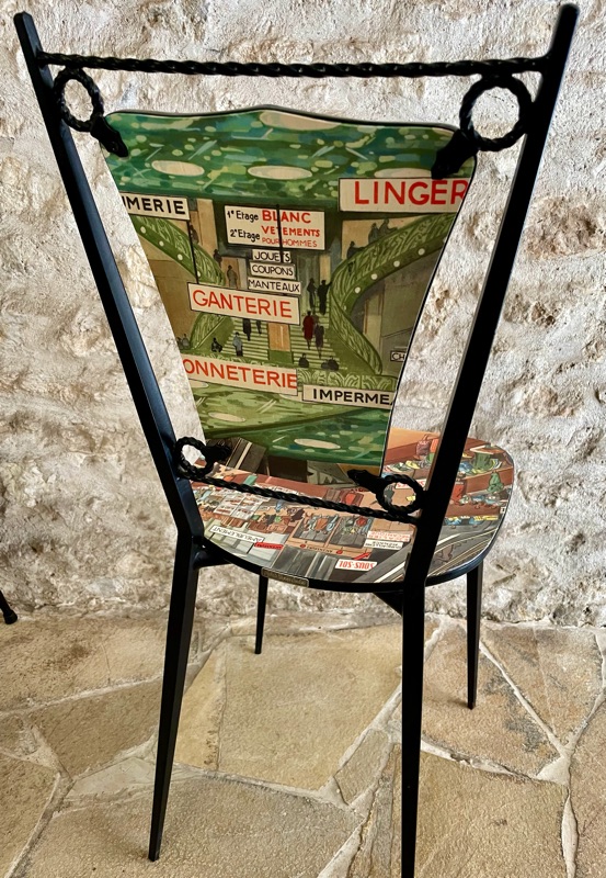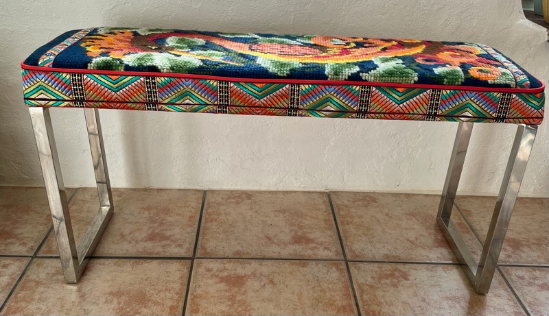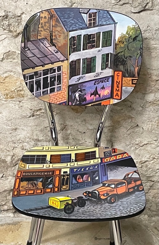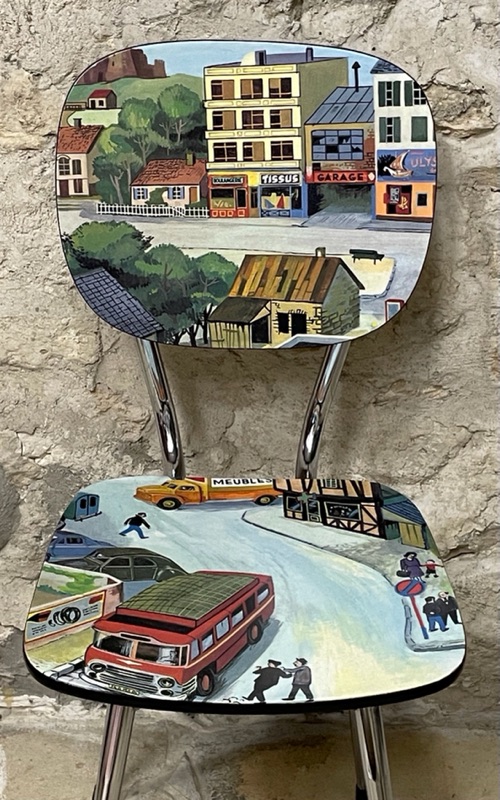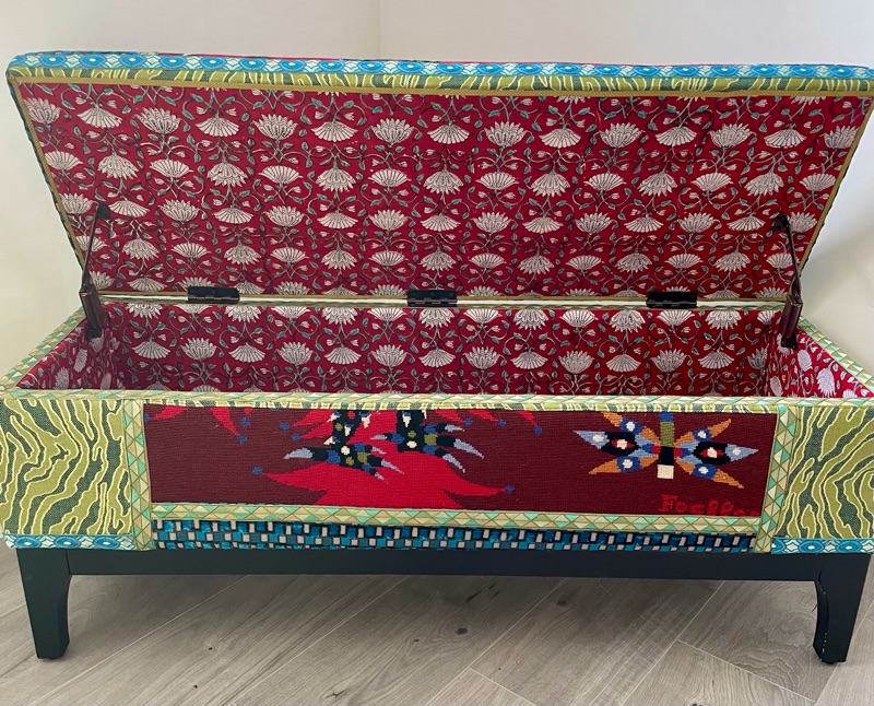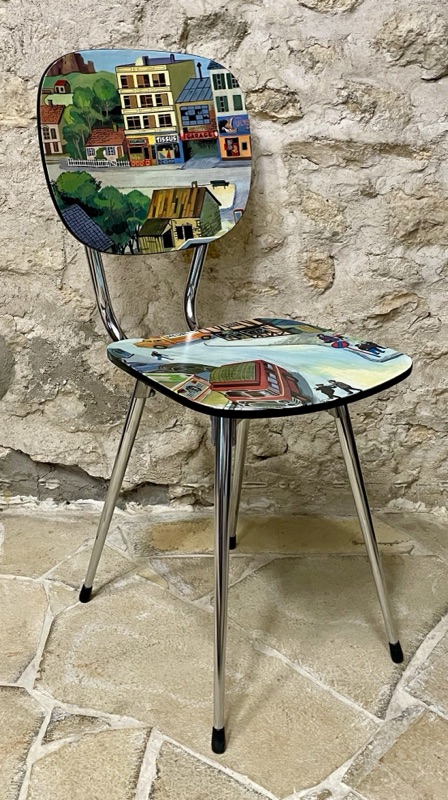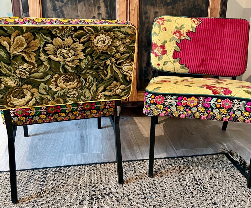 Je chine et je crée ! Tissus , canevas, galons anciens , fauteuils et meubles sont mes sources d'inspiration.