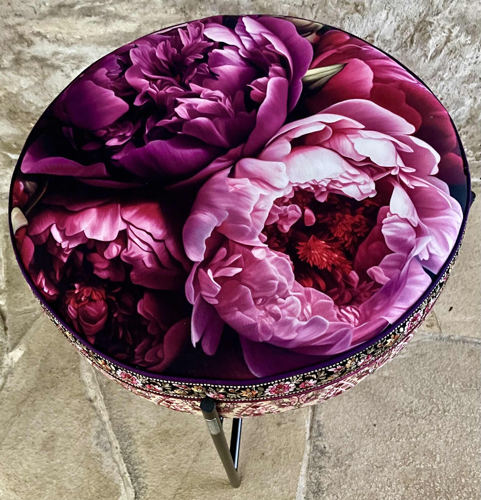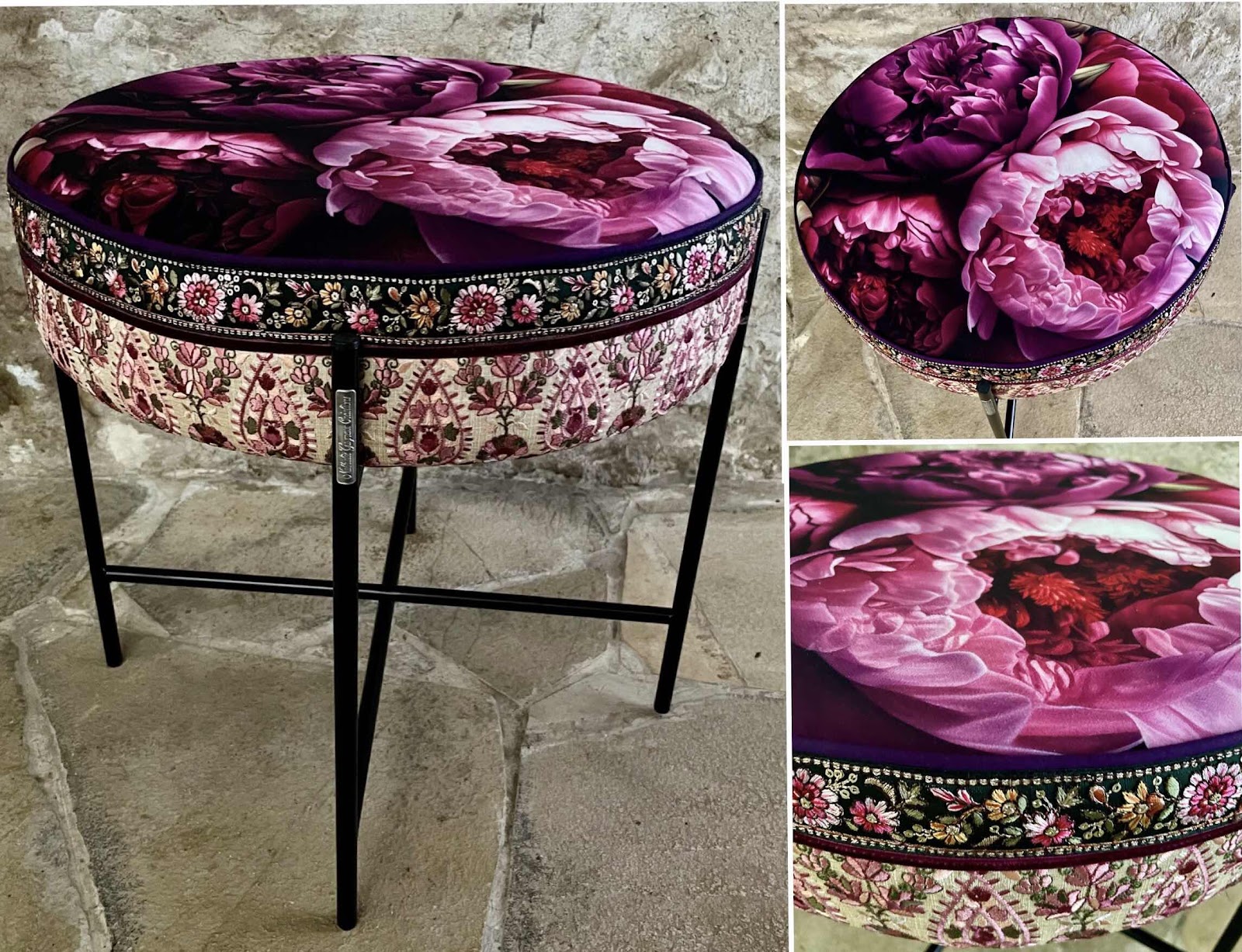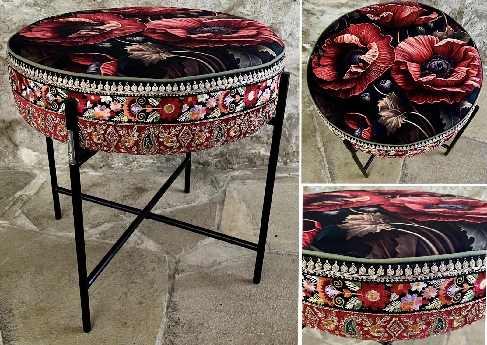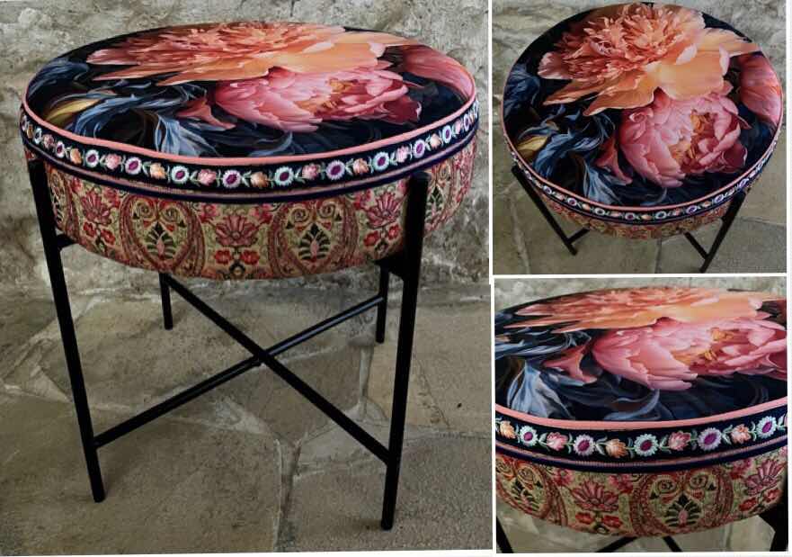 COLLECTION LE TEMPS DES FLEURS pouf velours et galons brodés